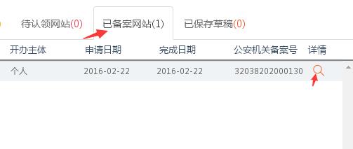 8,等幾天的時間備案審核通過后,在后臺主頁已備案國網(wǎng)站里點擊搜索按鈕