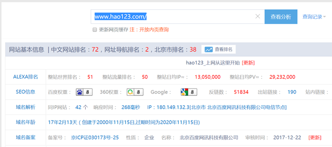愛站網(wǎng)對(duì)HAO123的百度權(quán)重值是7