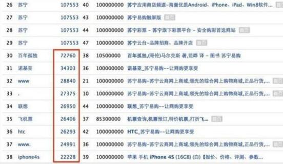 “百年孤獨(dú)”的百度指數(shù)是72萬(指數(shù)會(huì)變),那么,我們需要準(zhǔn)備243個(gè)和“百年孤獨(dú)”同樣指數(shù)的關(guān)鍵詞,再把這批詞中的20%即48個(gè)詞排名進(jìn)入百度首頁,即能新增35萬UV。對(duì)一些高指數(shù)的關(guān)鍵詞進(jìn)行外鏈建設(shè)并獲得排名,是迅速提升網(wǎng)站UV的好辦法之一。