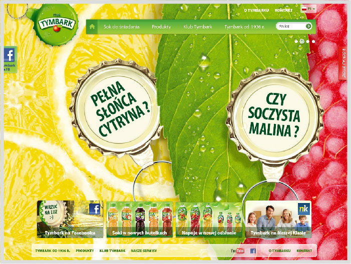 Tymbark飲料這個(gè)界面采用了紅、黃、綠的這三種對(duì)比色對(duì)比,界面效果清新明快。