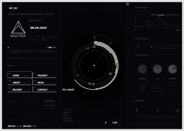 NewsTech設(shè)計(jì)公司這個(gè)網(wǎng)站采用了無(wú)彩色的對(duì)比,整個(gè)界面都是用了黑白灰來表現(xiàn),一般這種界面都會(huì)顯得比較冷酷和個(gè)性,但看久了也會(huì)覺得有點(diǎn)單調(diào)。這個(gè)界面在黑白灰的處理上做得特別好,通常只用黑白灰來表現(xiàn)主題難度很大,因?yàn)閷?duì)于界面的黑白關(guān)系不好掌握,也不好凸顯主次關(guān)系,但這個(gè)界面真是小編覺得推薦的一個(gè),界面的主次關(guān)系很明顯,在點(diǎn)線面的處理上可以看出設(shè)計(jì)者花了不少心思。