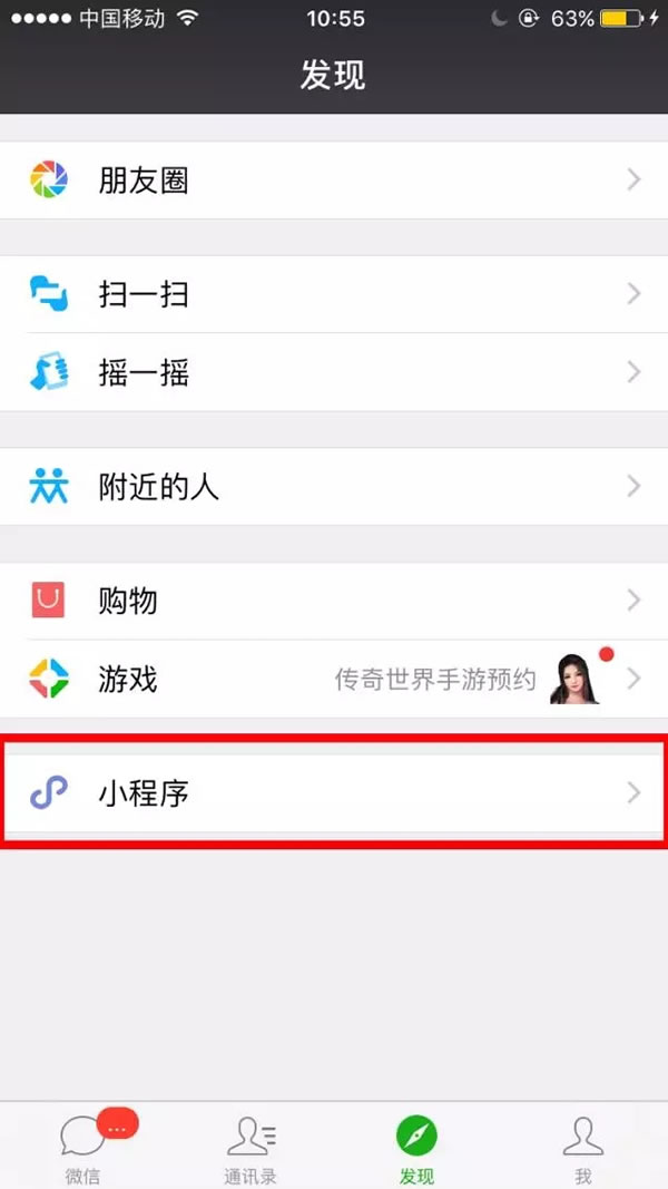 5、退出這個頁面,回到微信,點開你的微信第三頁面 “發(fā)現(xiàn)”,就能看到你的小程序啦!