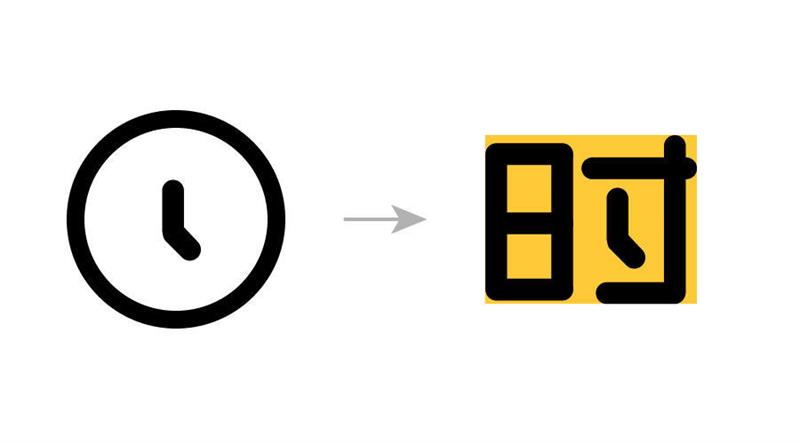如果覺得基礎(chǔ)字形可以了,那就想想如何加點(diǎn)小創(chuàng)意,例如時(shí)鐘可以想到表盤和指針,那時(shí)鐘的指針是不是可以和字體相結(jié)合呢?如下圖: