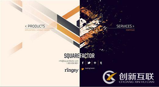 再看下一個(gè)頁(yè)面設(shè)計(jì),采用了兩種顏色拼湊的背景圖片,給人以強(qiáng)大的視覺(jué)沖擊,其大部分是空白處,用戶很快就能找到重點(diǎn),頁(yè)面簡(jiǎn)單大方。