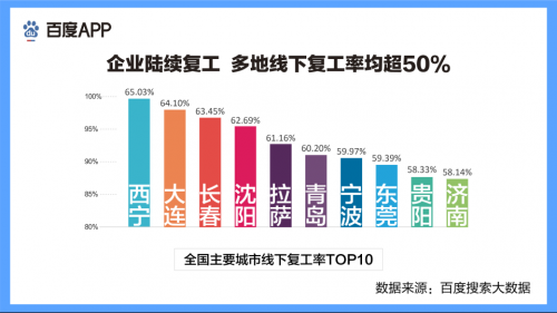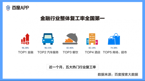 分享文章:百度復(fù)工搜索大數(shù)據(jù):多地金融業(yè)復(fù)工率超95% 一線城市商超營業(yè)率超80%