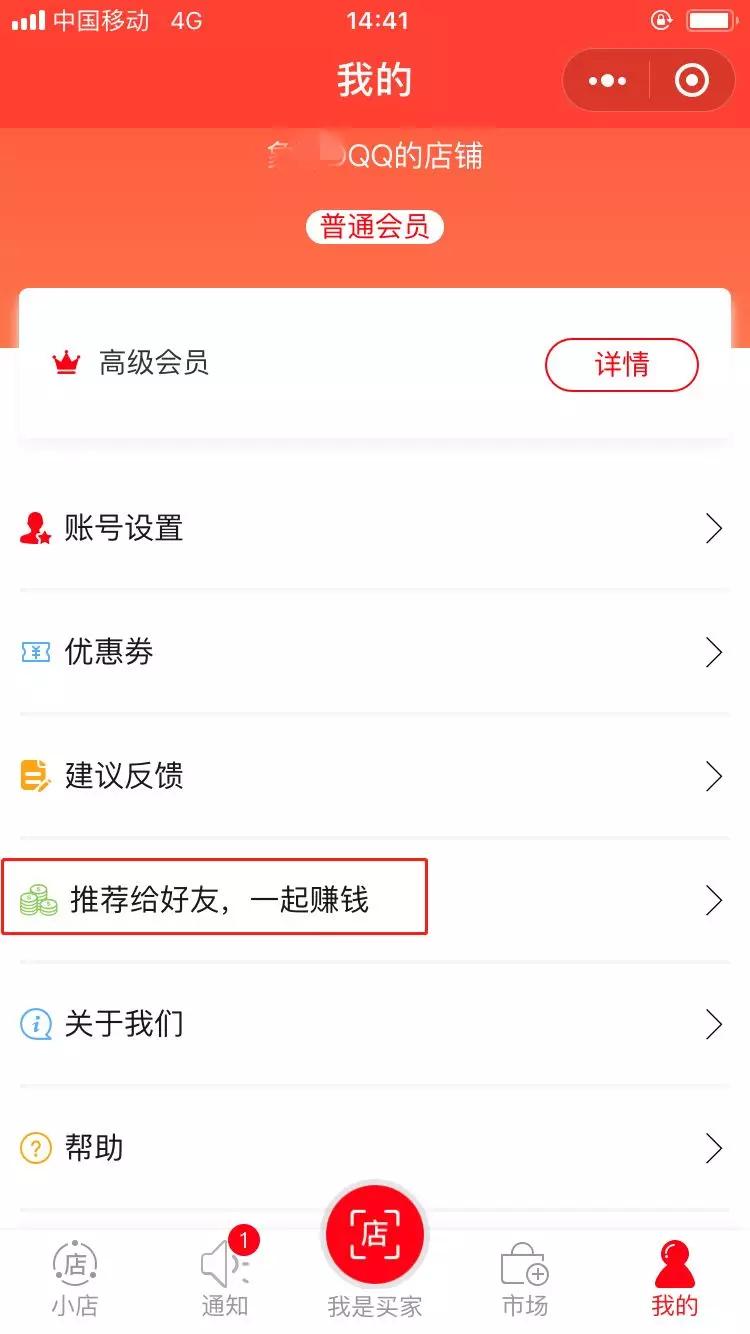 進(jìn)入創(chuàng)新互聯(lián)賣家界面,點(diǎn)擊“我的”,我們可以看到“推薦給好友,一起賺錢”。