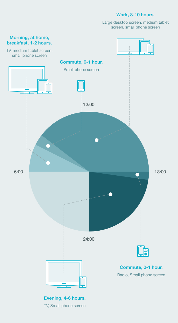確定產(chǎn)品的核心用戶體驗(yàn)后,選擇一組你希望支持的設(shè)備組,你需要調(diào)整每個(gè)組的體驗(yàn)(對(duì)于每個(gè)上下文的使用)。上下文的設(shè)計(jì)在不同設(shè)備組設(shè)計(jì)時(shí)尤為重要。