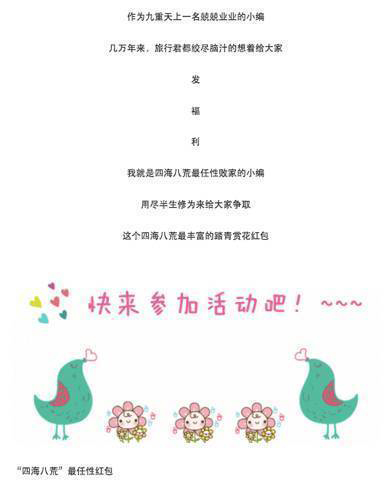 舉個(gè)栗子,下圖的活動中,用了手機(jī)一屏多的面積卻仍看不到這個(gè)活動到底是要干什么?幾萬年、任性敗家、用盡半生修為關(guān)我鳥事,不如直接“100張?zhí)で噘p花套票免費(fèi)送,另有百元現(xiàn)金大獎(jiǎng)等你抽”來的更簡單直接。