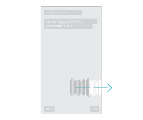 SoundCloud中,音軌沿著一條既定的水平軸線運(yùn)動(dòng),隨著音樂(lè)的播放,音軌自然地自左向右勻速運(yùn)動(dòng)。