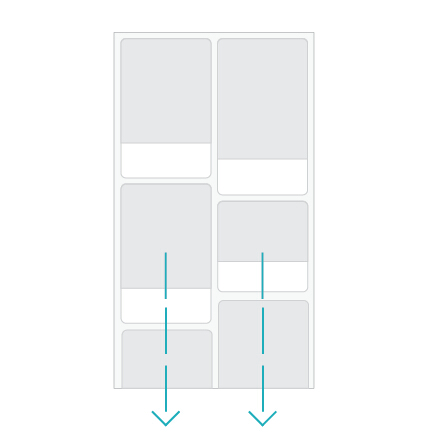 Pinterest的APP中就是這樣做的,持續(xù)不斷的圖片沿著中軸線的方向持續(xù)不斷地滾動(dòng)下去,只要你有興趣一直觀看下去。