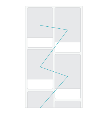如果終點(diǎn)是不確定的,那么你通常會(huì)沿著軸線的方向?yàn)g覽/運(yùn)動(dòng),直到你找到感興趣的東西,或者感到厭倦并關(guān)閉應(yīng)用。在建筑學(xué)中,未清楚界定的終點(diǎn)非常少見(jiàn),因?yàn)榻ㄖ男藿ㄍǔ](méi)法永遠(yuǎn)持續(xù)下去,但是UI設(shè)計(jì)則不一樣,無(wú)限地滾動(dòng)下去是無(wú)比受歡迎的設(shè)計(jì)手法。