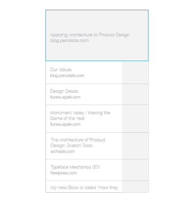 通過(guò)尺寸來(lái)區(qū)分文章列表層級(jí)的典型就是稍后讀應(yīng)用Pocket。頂部的輪播文章?lián)碛懈蟮膱D片,它的位置和尺寸會(huì)令我們一眼注意到。