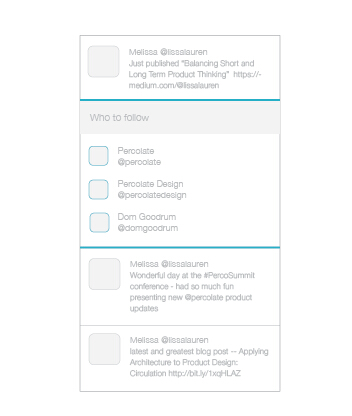 在Twitter的APP中,推文和推文保持著相同的樣式,均勻的節(jié)奏,但是其中的“推薦用戶”一項(xiàng)有著不同的樣式,它插入到推文列表中,打破了整個(gè)信息流的節(jié)奏,凸顯出不同的層級(jí),會(huì)很快抓住你的注意力。