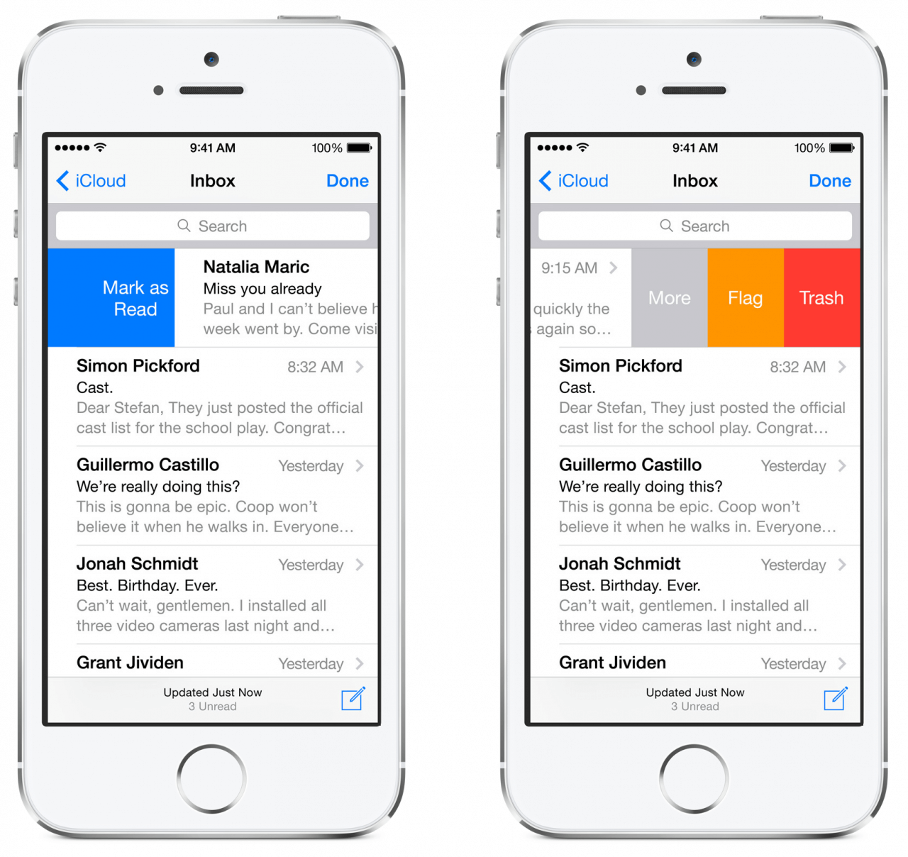 例如,在iOS系統(tǒng)中的Apple Mail,指向右側(cè)的V形圖從左到右映射到用戶視圖的移動(dòng)。(Large preview)
