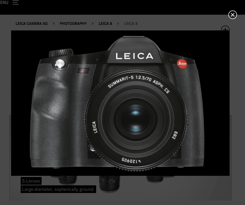 帶加號(hào)的圖標(biāo)可能含有不同的含義,在Leica,加號(hào)提示產(chǎn)品顯示的燈箱。有些用戶或許不會(huì)期望這種行為。放大鏡的縮放圖標(biāo)在這里可能不那么模糊。