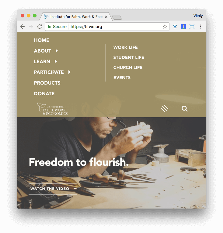 當(dāng)在tifwe.org的導(dǎo)航菜單中看到箭頭時(shí),用戶會(huì)期望什么行為?很明顯,導(dǎo)航項(xiàng)目右側(cè)的圖標(biāo)表示子菜單,設(shè)計(jì)充分利用了可用的空間。當(dāng)箭頭提示展開時(shí),分類標(biāo)題是直接跳轉(zhuǎn)到分類的鏈接。