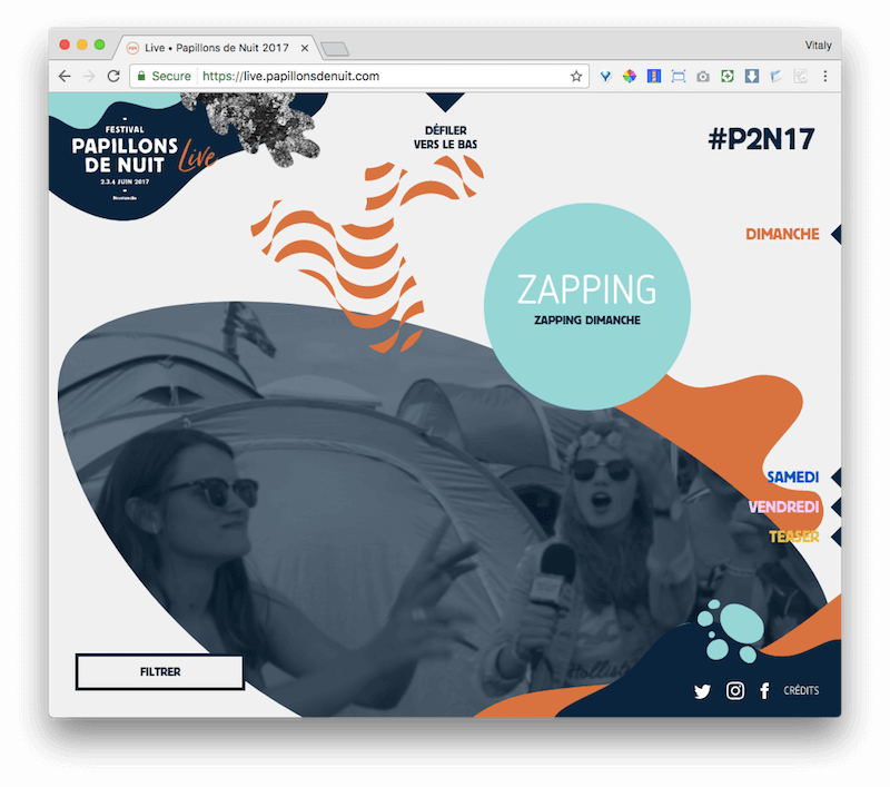 在Papillons De Nuit的箭頭。當(dāng)你點(diǎn)擊頁面頂部和頁面右側(cè)的箭頭時(shí),你期待的是什么?頂部的箭頭作為提示(在點(diǎn)擊時(shí)不起作用),而右側(cè)的箭頭將用戶滾動(dòng)到頁面的各個(gè)部分。不是每個(gè)用戶都會(huì)期望這種行為。(Large preview)