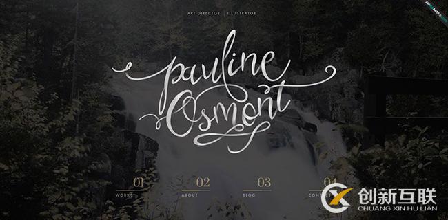 Pauline Osmont是一位藝術(shù)總監(jiān),設(shè)計(jì)師,插畫家,她的頁面展示了她的創(chuàng)意項(xiàng)目,使用一個(gè)寫得一手漂亮的字體設(shè)置主題形象。