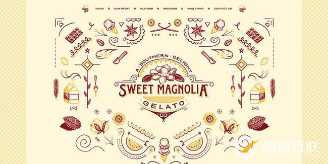 甜蜜的玉蘭冰淇淋有限做出美味gelatos,冰沙。手繪字體和手工設(shè)計(jì)元素是一個(gè)好的結(jié)合。