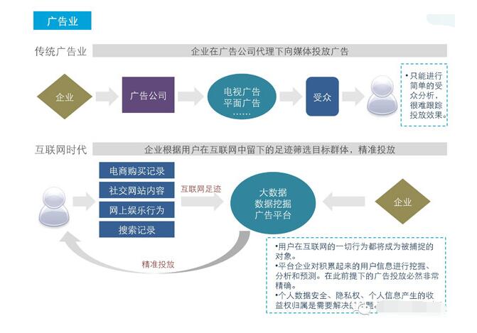 2、未來廣告業(yè)將依托互聯(lián)網(wǎng)大數(shù)據(jù)進(jìn)行再建立。在未來,在你酒后駕車被罰后,也許你老婆的手機(jī)里面會(huì)出現(xiàn)是否需要為你購買保險(xiǎn)的短信廣告。