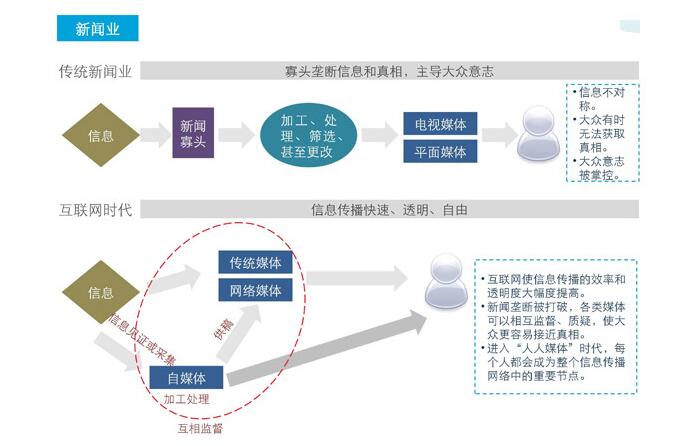 1、傳統(tǒng)新聞媒體的話語權(quán)衰弱,話語權(quán)將被分散到各個(gè)自媒體的山頭。新聞業(yè)會(huì)反過來向自媒體約稿。