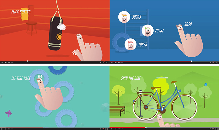 五個(gè)速度類游戲 非常輕質(zhì)量的即好上易手的H5小游戲,進(jìn)入游戲后有兩個(gè)選項(xiàng),一個(gè)是臉書賬戶登錄,一個(gè)是游客試玩。可以左右切換游戲,點(diǎn)擊Play就可以玩了,傳播的目都是在說英特爾處理器的快。游戲的玩法很簡(jiǎn)單,比如左邊打沙袋,沙袋上的圓圈會(huì)隨機(jī)出現(xiàn),然后用戶要打擊圓圈才能得分。自行車就是轉(zhuǎn)動(dòng)自行車踏,然后達(dá)到一定速度后會(huì)變化成更高級(jí)的自行車。如果用戶使用臉書登錄,可以看到目前好友積分排行情況。
