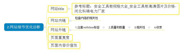 網(wǎng)站細(xì)節(jié)診斷方面,最重要的是網(wǎng)站內(nèi)容價(jià)值,通過筆者的觀察,網(wǎng)站的內(nèi)容大多都是直接復(fù)制比較陳舊的內(nèi)容,2008年的內(nèi)容都有,而且內(nèi)容的制作上比較雜,不單單是安全工具柜的內(nèi)容,還有公司的一些其他產(chǎn)品,例如橡膠墊、標(biāo)示牌等,都與關(guān)鍵詞并無太大關(guān)聯(lián),很多人就有疑問了,為何別人的網(wǎng)站也是這樣做,都能排的上去,其實(shí)原因很簡單,別人的網(wǎng)站能讓搜索引擎知道主要關(guān)鍵詞是什么,次要關(guān)鍵詞是什么,分清主次。