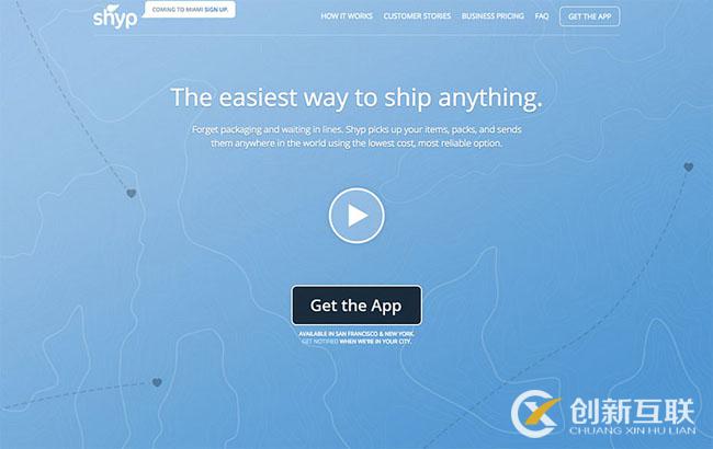 Shyp是一款旨在簡化包裹發(fā)運工作的服務。其流程是首先用手機應用拍攝物品照片,準備發(fā)運,然后Shyp會負責完成剩下全部工作。考慮到這個想法比較不尋常,所以需要比較復雜的解釋工作來展現(xiàn)出這項服務的簡單和直接,而這也就是登陸頁面的作用了。用戶滾動鼠標時,可以看到分步驟的服務流程,并領(lǐng)會到這一切有多簡單和方便。