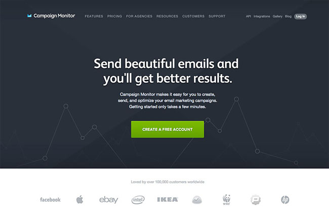 打造簡單雅致的登陸頁面看似簡單做起來難,但是Campaign Monitor出手不凡。這是我印象中最簡單但最漂亮的頁面。其同樣踏中了最正確的節(jié)奏:有力的標題、撰寫得當?shù)慕榻B語準確說明軟件的好處、顯眼的操作引導以及一片正在使用其軟件的知名公司名稱。