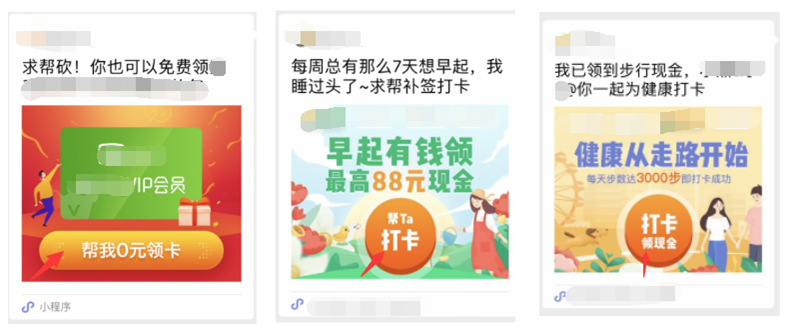 會(huì)發(fā)現(xiàn),在分享鏈接中,文案傳達(dá)朋友友情幫點(diǎn)意思的回流率更高。因此,可以在分享圖文中適當(dāng)加上類似【幫我點(diǎn)贊/幫TA砍一刀】之類的按鈕。