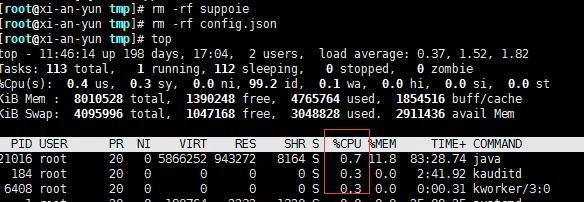 算了,大度的我先不和你計(jì)較。干掉這兩個(gè)文件后再查看 Top:
