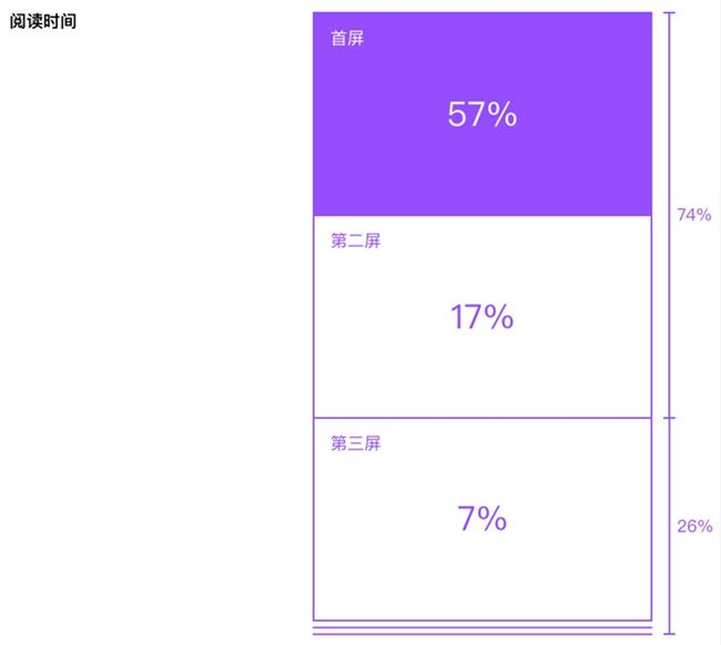 如題,用戶把大約80%的時(shí)間花費(fèi)在前三屏,其中首屏占了超過一半(57%),前兩屏加起來占了3/4(74%)。所以實(shí)際上占大頭的還是前兩屏,第三屏7%的占比其實(shí)并沒有什么影響力。
