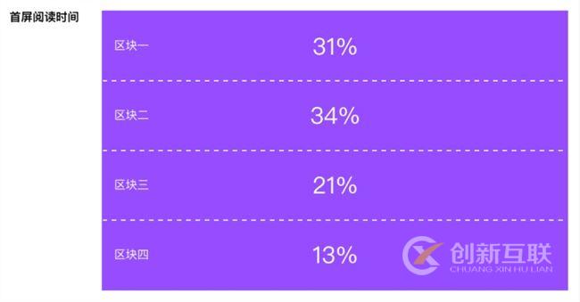 既然首屏這么重要,那不妨單拎出來。如果把首屏平分為 4 個(gè)區(qū)塊,實(shí)際上用戶最關(guān)心的區(qū)塊不是最上面那個(gè),而是第二個(gè)(雖然兩者相差也沒多大)。