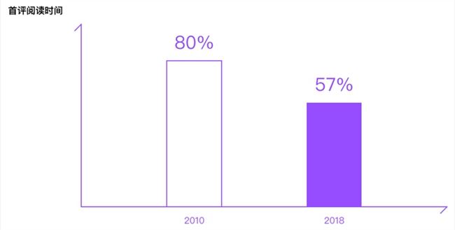如題, 2010 年用戶把80%的網(wǎng)頁瀏覽時(shí)間花費(fèi)在首屏; 2018 年用戶把相同比例的時(shí)間花費(fèi)在前 3 屏。也就是 2010 年用戶看完首屏的時(shí)間里, 2018 年的用戶已經(jīng)看完第三屏了。