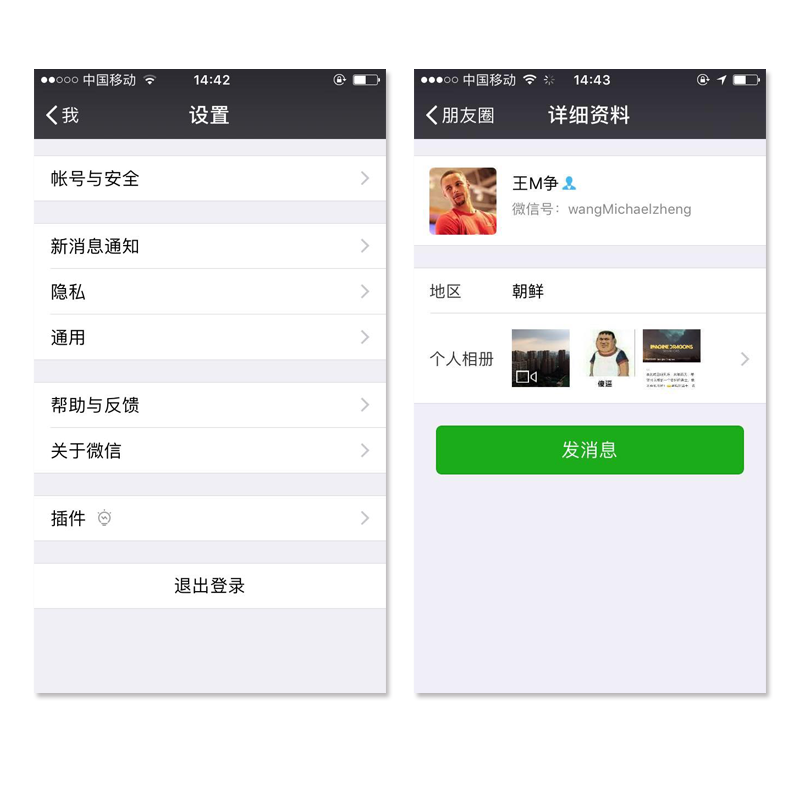 以微信為例,其對(duì)“退出登錄”按鈕進(jìn)行了弱化,微信中的按鈕樣式是填充了綠色的圓角矩形。其實(shí)這種弱化也很容易理解,微信肯定不希望用戶退出當(dāng)前的賬號(hào)。