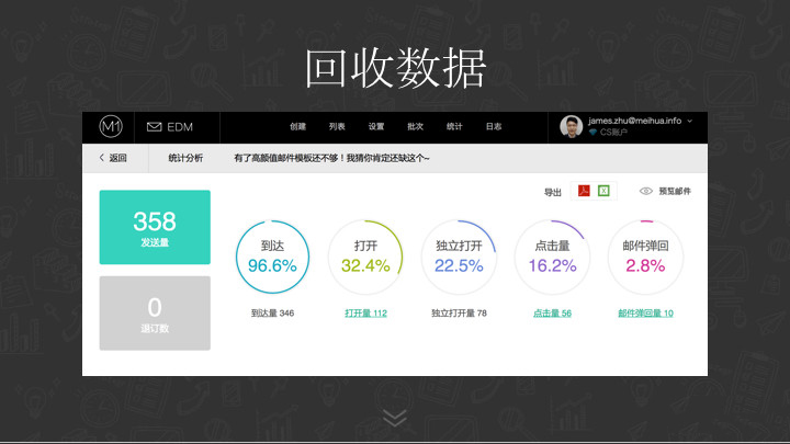 每一封郵件都有追蹤能力:根據(jù)用戶的行為,統(tǒng)計(jì)到打開郵件的數(shù)量, 點(diǎn)擊數(shù),便于營(yíng)銷效果的衡量