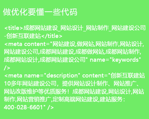 總體上來(lái)說(shuō),不能一概而論,所以;您如果不是使用創(chuàng)新互聯(lián)網(wǎng)站系統(tǒng),您就需要懂得一些css+div操作了,這對(duì)于優(yōu)化是一大助力。由此可以看出,做優(yōu)化最好還是要懂得一些代碼的。