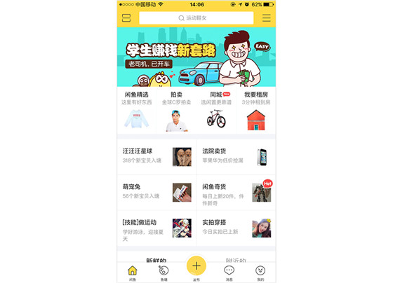 為了減少用戶學習成本,不管從視覺還是交互層面我們都要遵循一致性。包括同一個產(chǎn)品不同終端,要保持視覺統(tǒng)一性,才能加深用戶對產(chǎn)品品牌的認知,這些也都沒毛病。下面是咸魚,頂導航顏色采用黃色,為了各端一致性。
