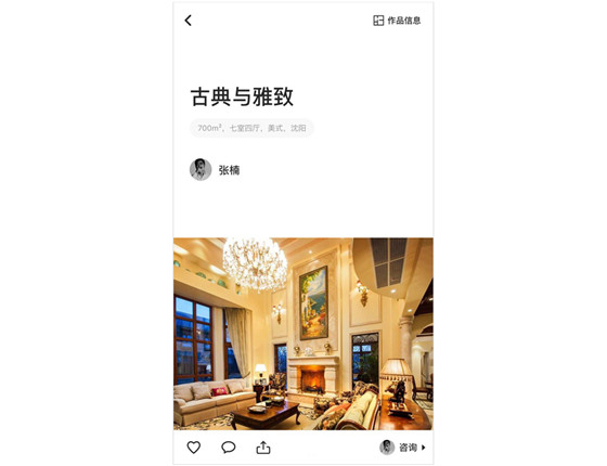 工作的前一兩年,研讀并遵循著平臺設計規(guī)范,從而幫助我們在工作中做出不會出錯的設計,同時提升工作效率和說服力。但是隨著自身經(jīng)驗的累積和成長,需要對此產(chǎn)生警惕,如果我們一直局限在別人制定的規(guī)范里,不去思辨,很容易陷入十年如一日的工作狀態(tài)中,很難做出創(chuàng)新的設計。同時也可以看出很多優(yōu)秀的設計作品,陸續(xù)跳出規(guī)范,不局限于規(guī)范制定的像“大字號多少px”,“導航條多少px”,“上下間距多少px”等等... 而是設計出符合自己產(chǎn)品氣質(zhì)的界面。下面有幾個例子:下面是蝸牛裝修APP的設計,可以看出,a.頂部區(qū)域并沒有明確的模塊區(qū)分導航區(qū)域,而只有滑動時,導航的分隔才出現(xiàn)。b.字號和間距的大小,也讓人瀏覽起來更加放松。