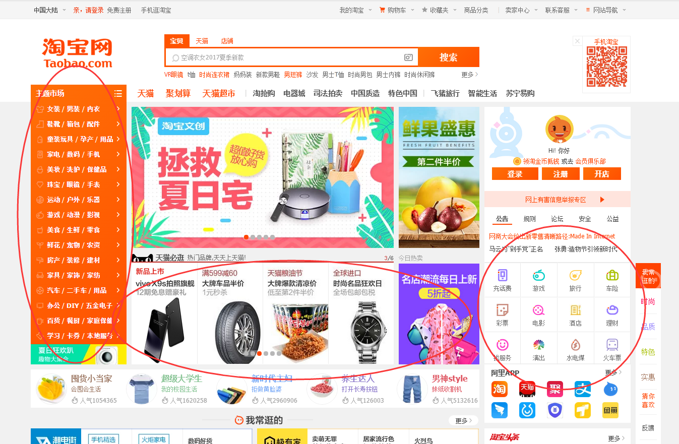 如今我們逛一些相當(dāng)成熟的購(gòu)物網(wǎng)站(比如淘寶)的時(shí)候,甚至比在百貨商廈中的感覺(jué)更清晰。我能更便捷地找到自己想要的東西。(商品分類(lèi),新品促銷(xiāo),其他功能。。。)