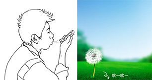騰訊微博吹一吹功能。只要對著手機屏幕話筒位置的蒲公英吹一口氣,白色的絨球就會飛散開來,帶你穿越到地球的各個角落。