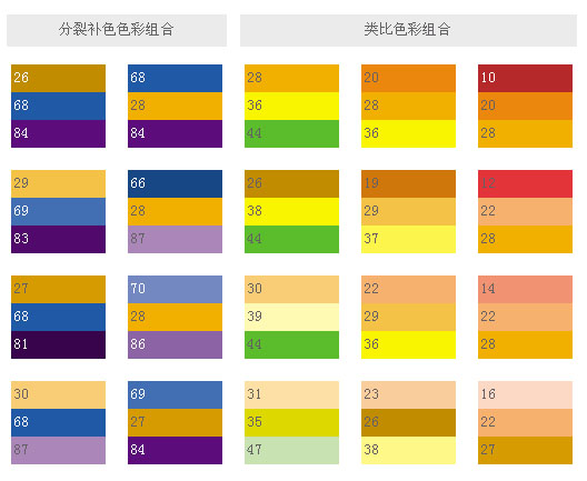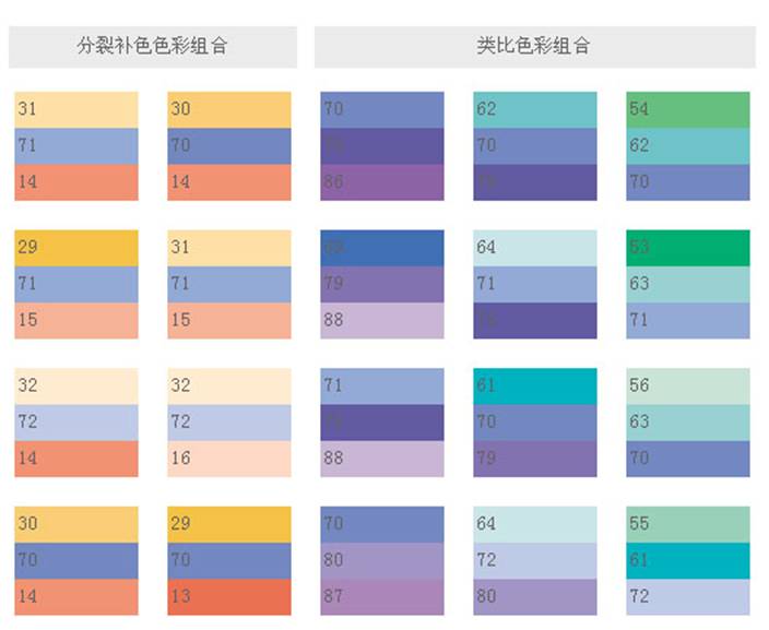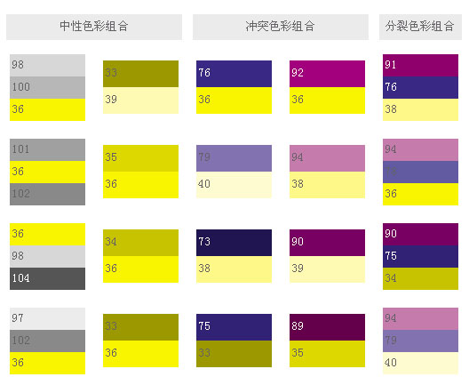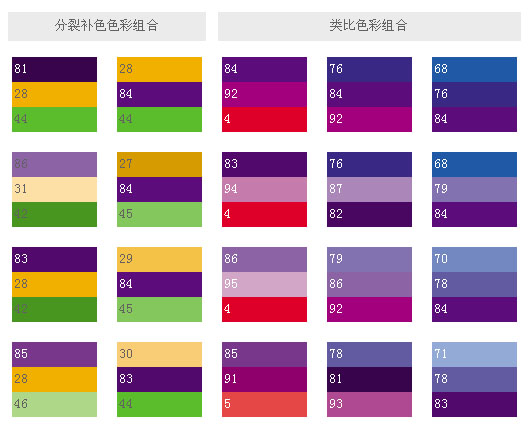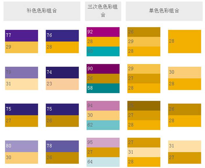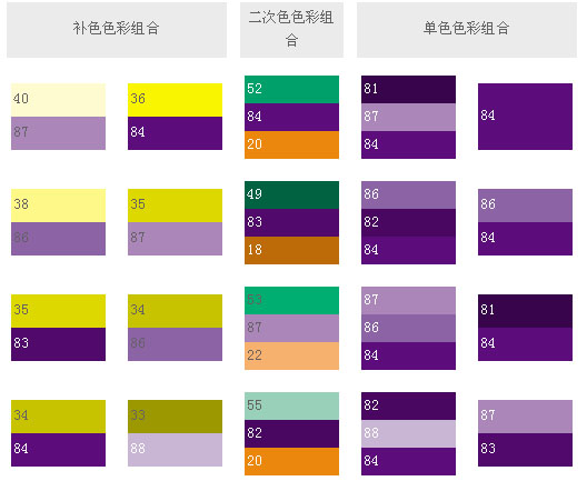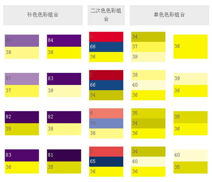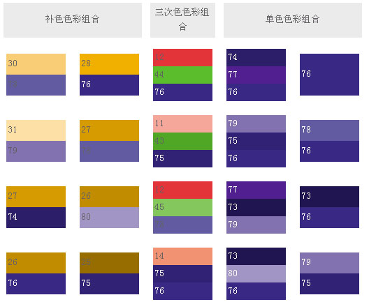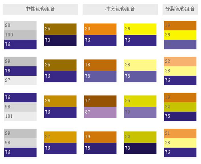 和這類色彩搭配,可象征權(quán)威,表現(xiàn)出皇家的氣派,就象夏日的梅子,有深不可測(cè)的藍(lán)黑,藍(lán)紫和它的補(bǔ)色——黃橙搭配起來,就創(chuàng)造出最驚人的色彩設(shè)計(jì)。
