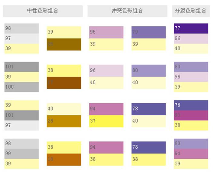 如果紫色配上黃綠色或黃橘色,色調(diào)不合、怪異,而且俗不可耐,但如果配上它真正的補(bǔ)色——黃色,便能展現(xiàn)怪誕、詭異的感覺,令人不禁要駐足,欣賞一番。