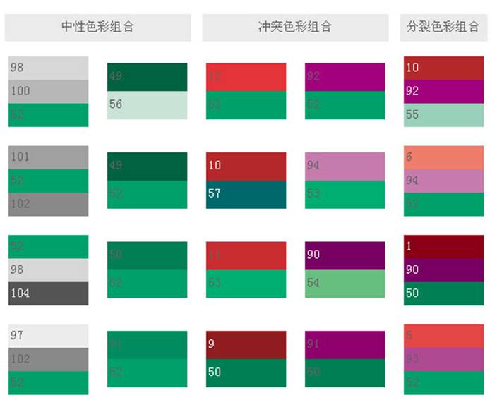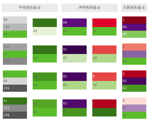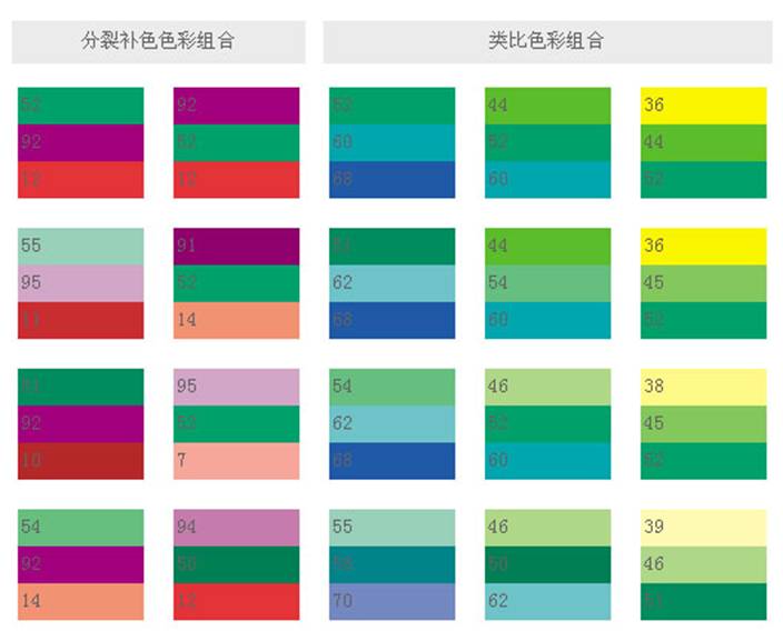 采用色相環(huán)上綠色的類比色,可設(shè)計(jì)出代表戶外環(huán)境、鮮明、生動(dòng)的色彩。