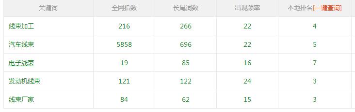 廢話少數(shù),直接上圖。很多網(wǎng)友問我為什么這個(gè)網(wǎng)站的排名這么穩(wěn)定,汽車線束這個(gè)詞指數(shù)已經(jīng)3000多了,排名在首頁(yè)的詞局指可數(shù),即使勉強(qiáng)排到了首頁(yè),也沒有穩(wěn)定幾天就掉到后面了。其實(shí)做網(wǎng)站優(yōu)化沒什么特別之處,傻傻的堅(jiān)持就會(huì)有所回報(bào)。