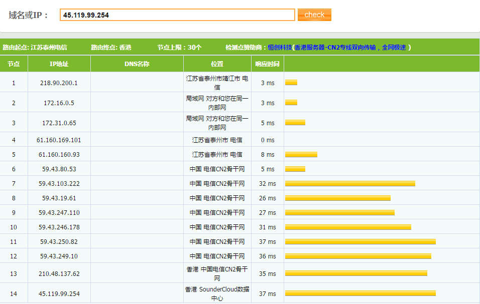 1、測試IP:45.119.99.254(自營香港SonderCloud數(shù)據(jù)中心)