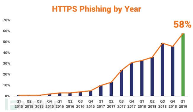 - 據(jù)APWG.org ,58%的網(wǎng)絡(luò)釣魚網(wǎng)站獲取了ssl / TLS證書并啟用了HTTPS。