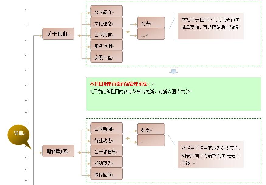 要建設的網(wǎng)站導航以及版塊說明可以參照以下圖片制作
