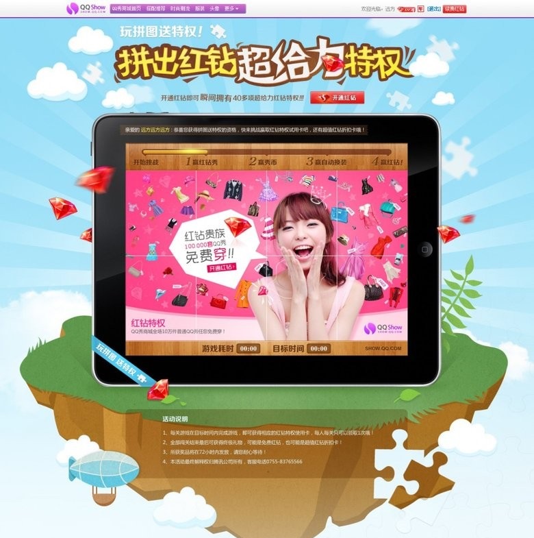 圖二:qipai類頁(yè)面設(shè)計(jì),在較少的內(nèi)容信息情況下,通常將第一屏作為首要信息顯示區(qū)域。頁(yè)面設(shè)計(jì)除了營(yíng)造強(qiáng)烈的氛圍以之外,設(shè)計(jì)師對(duì)頁(yè)面細(xì)節(jié)設(shè)計(jì)有很高的要求,桌面質(zhì)感處理的比較細(xì)膩。在這樣的靜態(tài)頁(yè)面中,也可以體驗(yàn)到較強(qiáng)的游戲感。