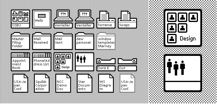 Xerox Alto 中引入了大量的圖標(biāo)設(shè)計(jì),其中文件夾和垃圾箱的圖標(biāo)設(shè)計(jì),從當(dāng)時(shí)一直延續(xù)到現(xiàn)在,成為圖標(biāo)設(shè)計(jì)中最廣為人知和普遍接受的設(shè)計(jì)概念。